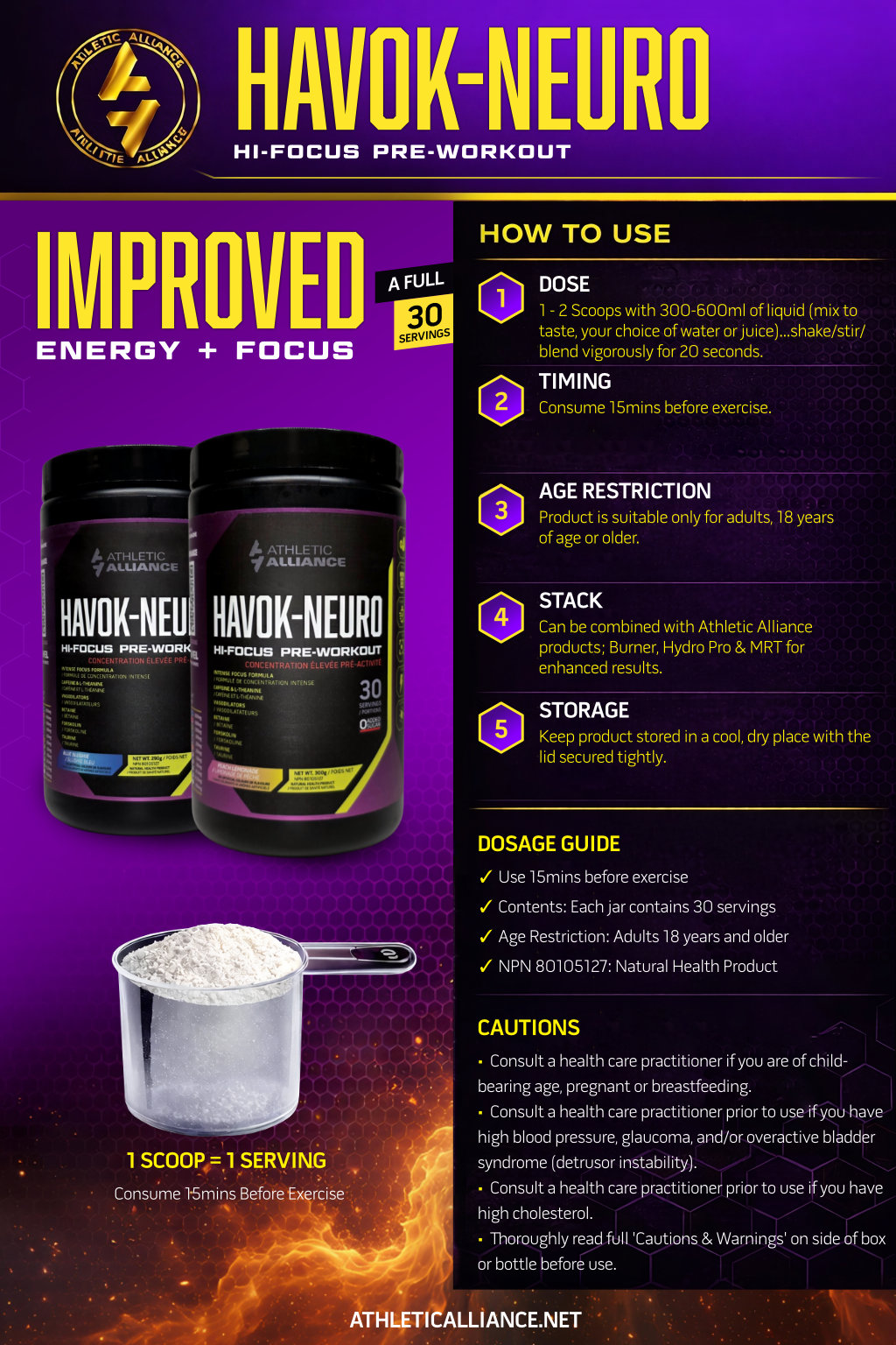 Havok-Neuro is a high nootropic pre-workout supplement - the ultimate solution for athletes and fitness enthusiasts demanding extreme mental clarity/alertness. Our carefully crafted formula is designed to enhance your mental and physical performance, helping you power through your workouts and achieve your fitness goals.